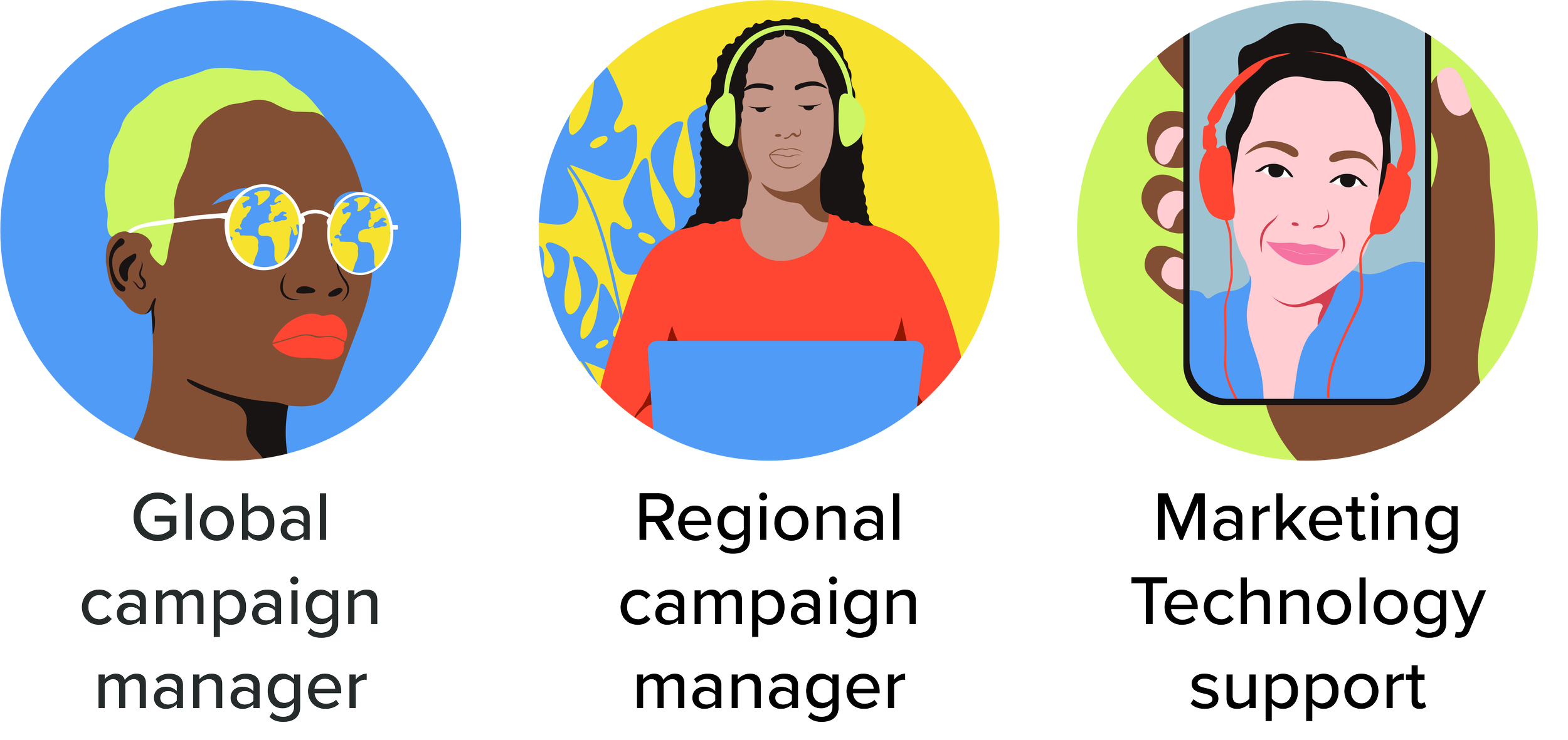Core team: product manager, UX designer, engineering manager, marketing technology manager